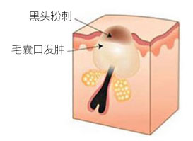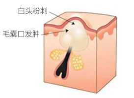 毛囊皮脂腺口被角质细胞堵塞,角化物和皮脂充塞其中,与外界不相同,形成闭合性粉刺,看起来为稍稍突起的白头。